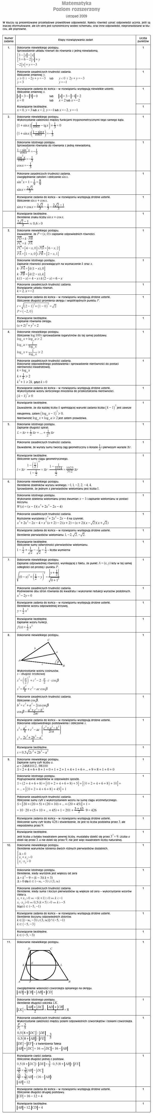 Matematyka - profil rozszerzony - odpowiedzi
